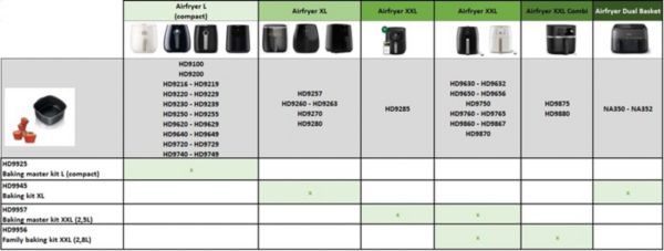 Următoarele kituri de copt Philips sunt disponibile pentru Airfryer (consultă şi imaginea de ansamblu):